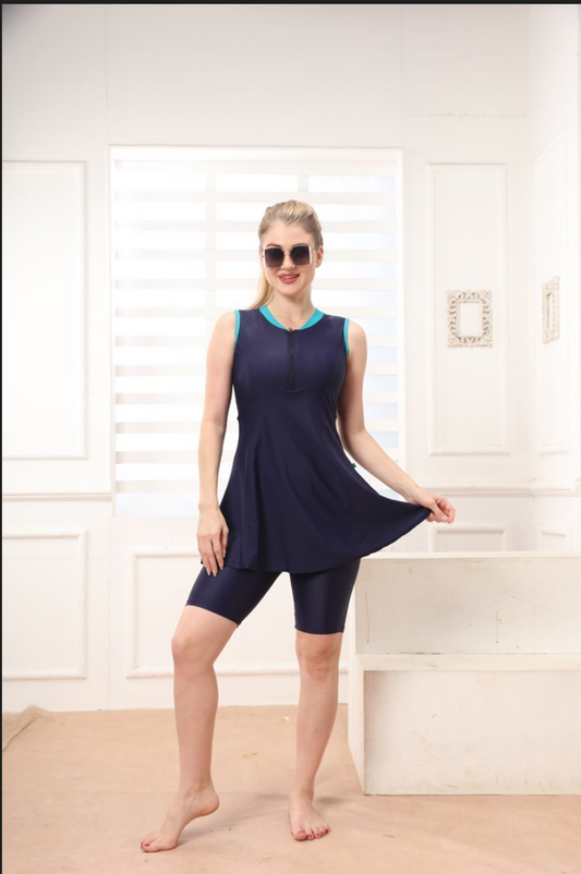Women colour blocked flair legged swimsuit (U-9 PAT)